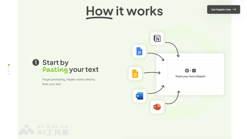 - 粘贴文本:在Napkin的编辑区域粘贴或输入你想要转换成视觉图像的文本内容。